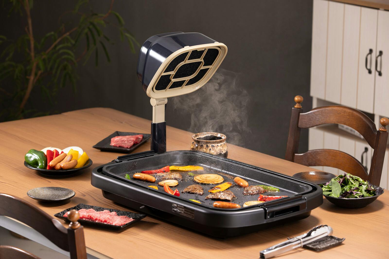 煙や油を吸収!持ち運びできるコンパクト換気扇 ●色/ブラック ●活性炭フィルターで煙をカット。軽量・コンパクトでキッチンやダイニングなど様々なシーンで活躍します。 ●煙や油を気にせずおうちで焼肉やたこ焼きパーティー! ●焼肉・鍋・ホットプレート ●お部屋に煙がこもらない! ●ON・OFFだけの簡単操作 ●高さ6段階調節可能 ●角度調節可能 ●フィルターは取り外して洗えます ●フィルター5枚付き