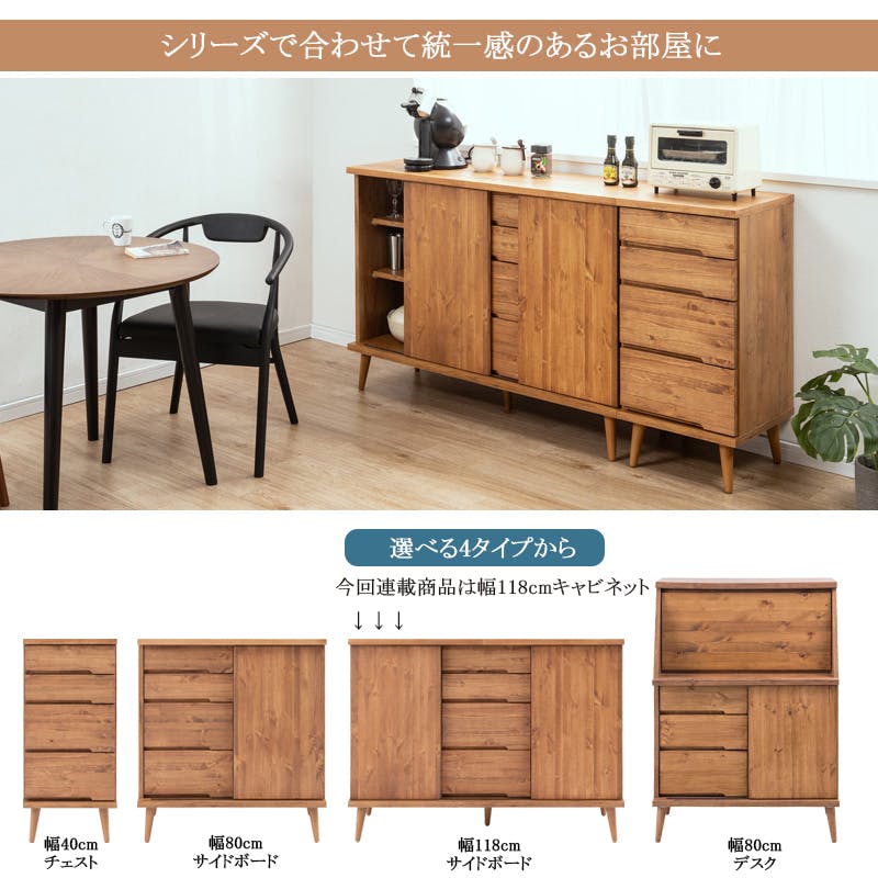 【Re:REBORN】 幅118 奥行42 高さ87.5 サイドボード ナチュラルヴィンテージ 日本製 完成品 大川家具 天然木 天然木パイン材 オイル塗装 ラバーウッド キャビネット 引戸 引き戸 引出し 引き出し A4 収納 スライドレール 書棚 棚