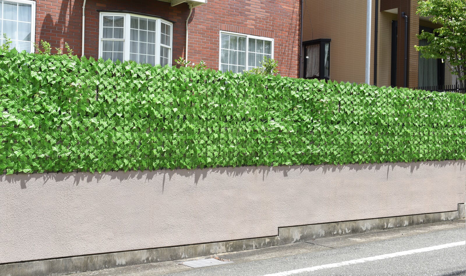 外から丸見えの庭を色鮮やかな外観に大変身! ●外からの視線や紫外線を遮りつつ自然な風を通します。工事不要でテラスやベランダ・外壁などに手軽に取り付け可能。 ●取り付け簡単:付属の結束バンドで固定するだけ。●花無し:グリーンのみのシンプルタイプ