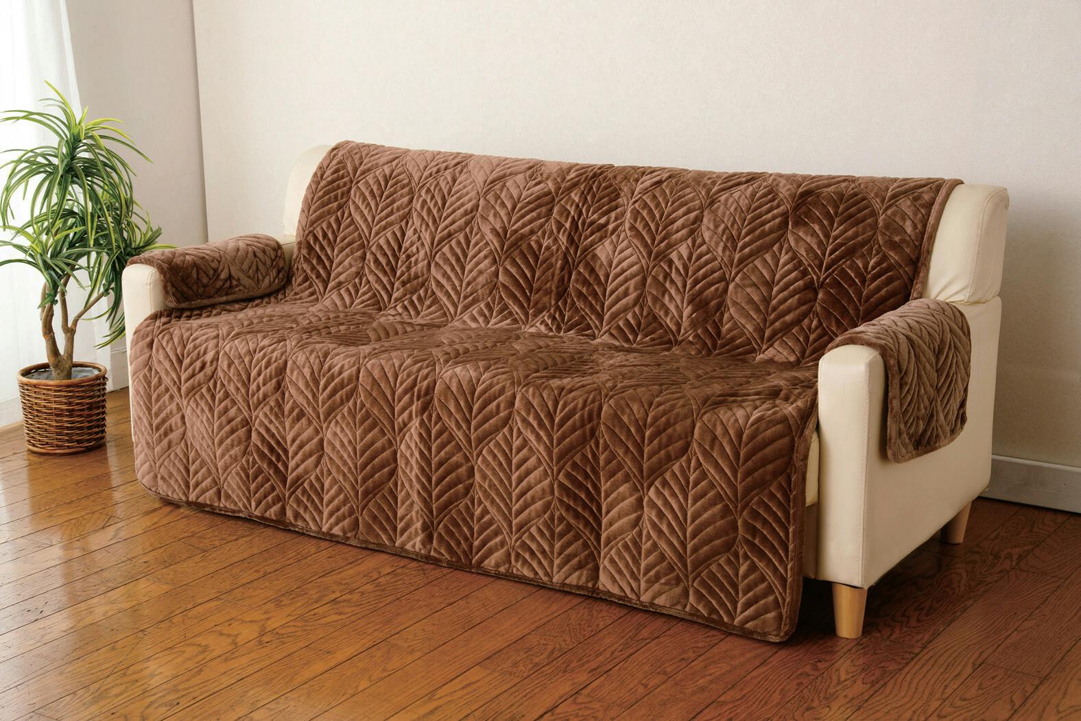 ふんわり暖かくなめらかな肌触り。掛けるだけの楽々、中掛けソファカバー ●丁寧にキルトを施した立体的なリーフ柄がお洒落。 ●フランネル毛布地でひんやりしないあったかタイプ。 ●手洗いOK!