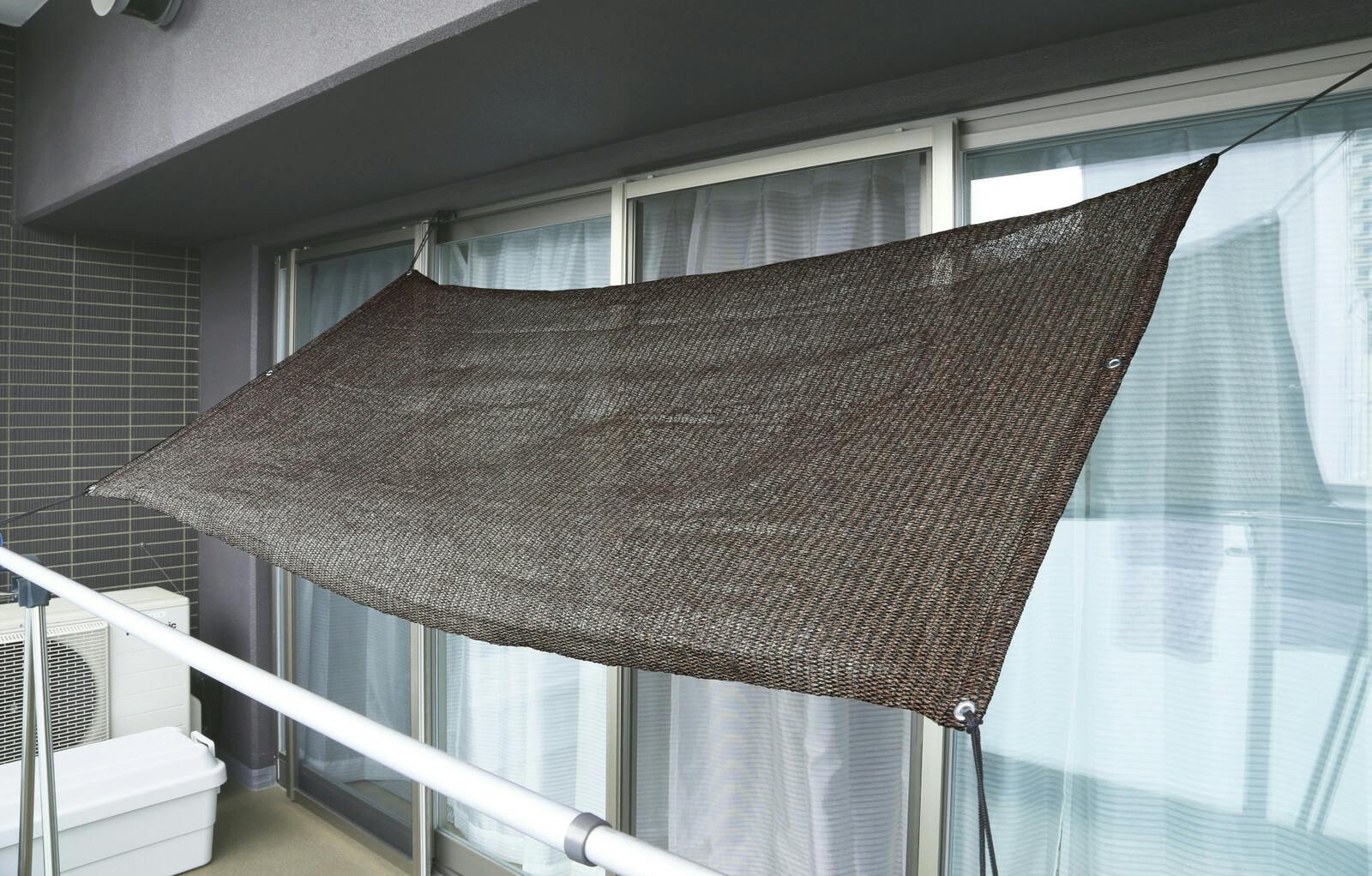風は通して視線と日差しを遮る目隠しシート。 ●付属のロープを柵に結ぶだけの簡単設置 ●丸見えだった洗濯物も、しっかり隠れる! ●サンシェードとしても使用OK! ●目隠し・日よけ・強風よけ・落下物防止