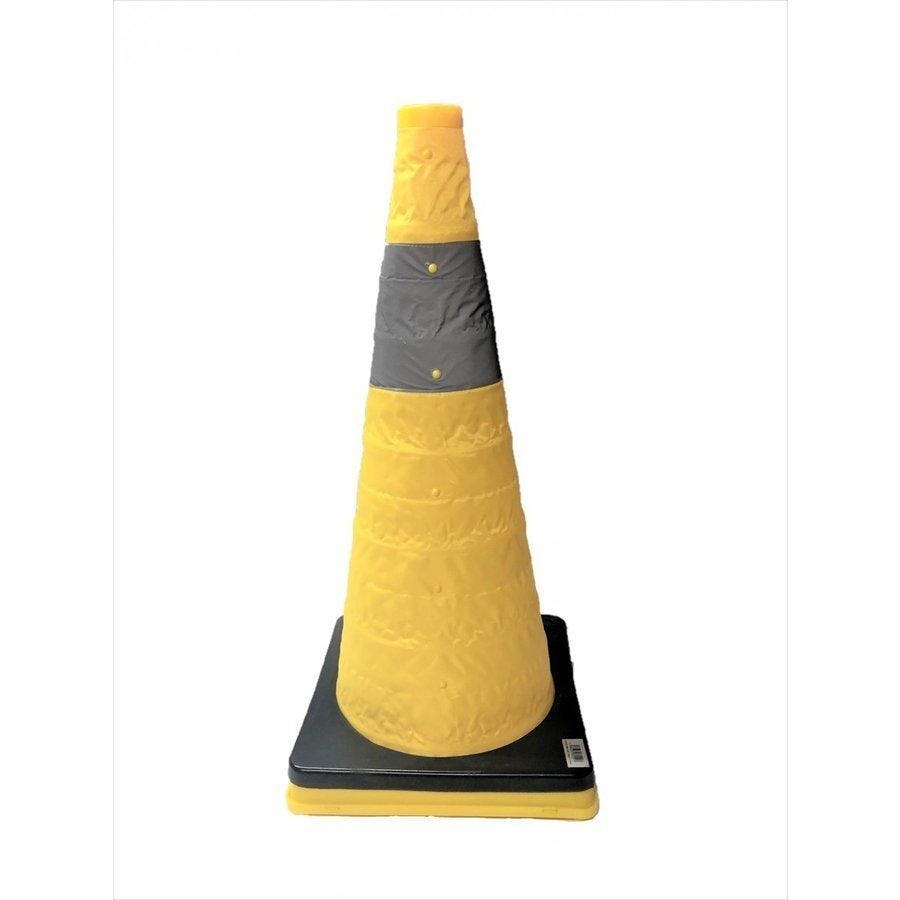伸縮式カラーコーン ウェイト付き 2個セット 高さ62cm 折り畳み三角コーン イエロー