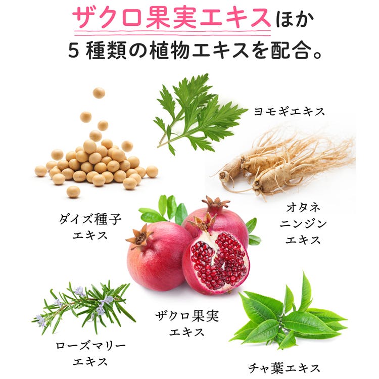 精製水、グリセリン、ヒアルロン酸Na、乳酸桿菌豆乳発酵液、ザクロ果実エキス、ヨモギエキスほか