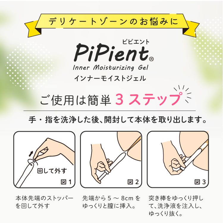 3. ピストンを押してジェルを注入します。4. ピストンをゆっくり抜いてください。使用後はナプキン等の着用をおすすめします。