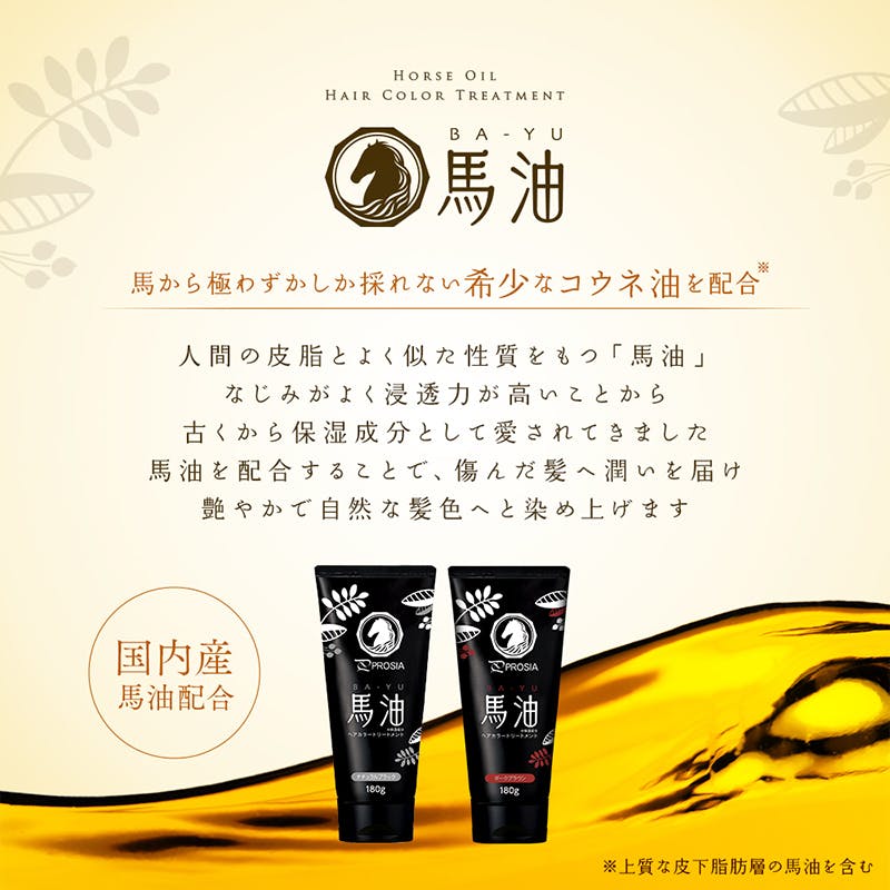 【プロシア 馬油ヘアカラートリートメント ナチュラルブラック】 ちあふる 国産馬油で傷んだ髪を補修しながら白髪染め!週1〜2回、5分で自然にカラーリング 15種の保湿成分配合 艶やかな髪色へ ダメージケア 日本製 JAN:4989409099449