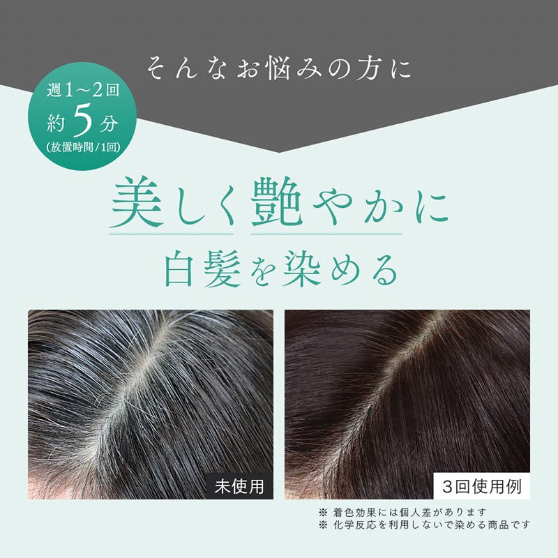 シャンプー後に水気を切り、適量を髪全体になじませ5分程度置きます。