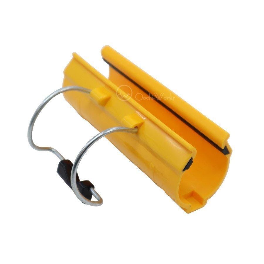 スライダーを外さずに単管パイプに装着すると、部分的に力が加わり割れる可能性がございますため、装着時は必ずスライダーを外した状態で装着してください。