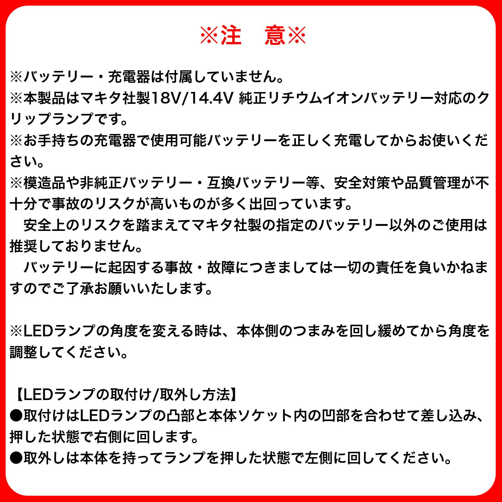 0℃~40℃・本体/ABS・PVC LEDランプ/PC バッテリーホルダー/PC