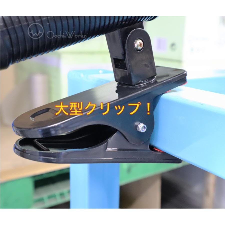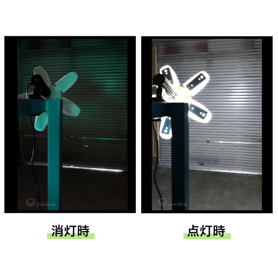●5枚羽根タイプ!約6300ルーメンで抜群の明るさ! ●閉じて全方向照射、開いて前面集中照射と用途に合わせて形状を変えることができます。 ●連結して使用できる連結コンセント付。 ●つかみやすい樹脂製大型クリップ採用。 ●電球寿命約40000時間。