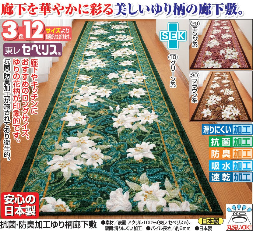 抗菌・防臭加工ゆり柄廊下敷  【65×340cm】【グリーン】 【送料込み】 #4589978807263 flife