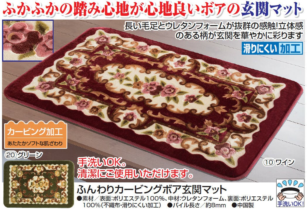 ふんわりカービングボア 玄関マット 【マットM】【ワイン】 滑りにくい加工 手洗いOK 【送料込み】 #a3087510 flife