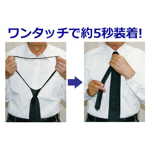 ゆるめて締めるだけの簡単ネクタイ。 ●ネクタイに不慣れな方でも簡単。 ●ワンタッチで約5秒装着! ●白:慶事用、黒:弔事用、グレー:法事用
