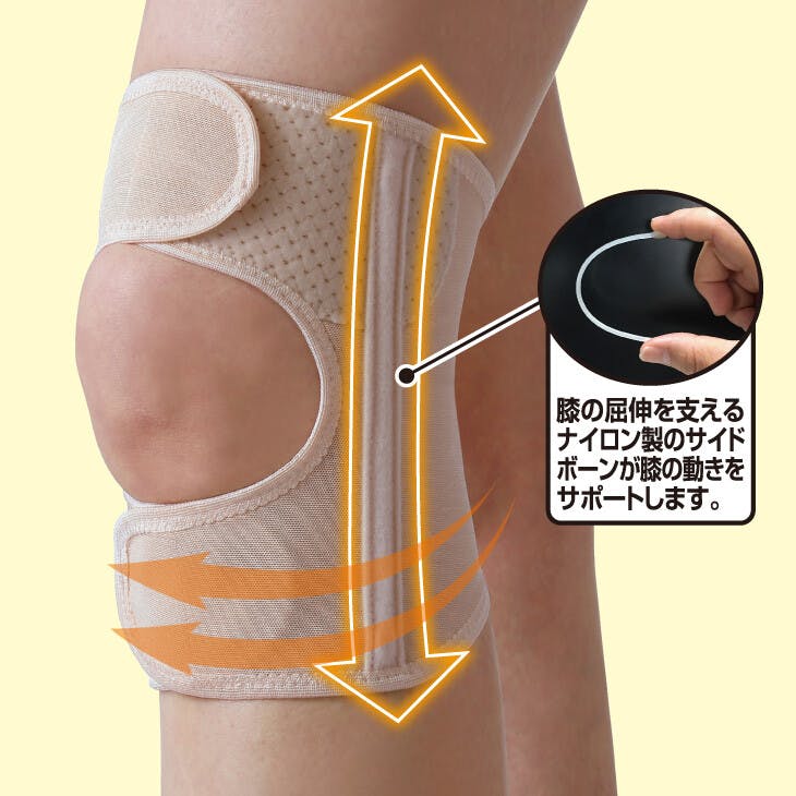 肌着感覚なのにガッチリ!!安定感抜群で元気歩行! ●色/ベージュ ●「着けている事を忘れる」くらい軽い着け心地の肌着のようなサポーター。通気性・伸縮性に優れガッチリと膝まわりをサポート。 ●歩行もスイスイ♪ ●膝の屈伸を支えるナイロン製のサイドボーンが膝の動きをサポートします。 ●ひざ裏もムレにくい!