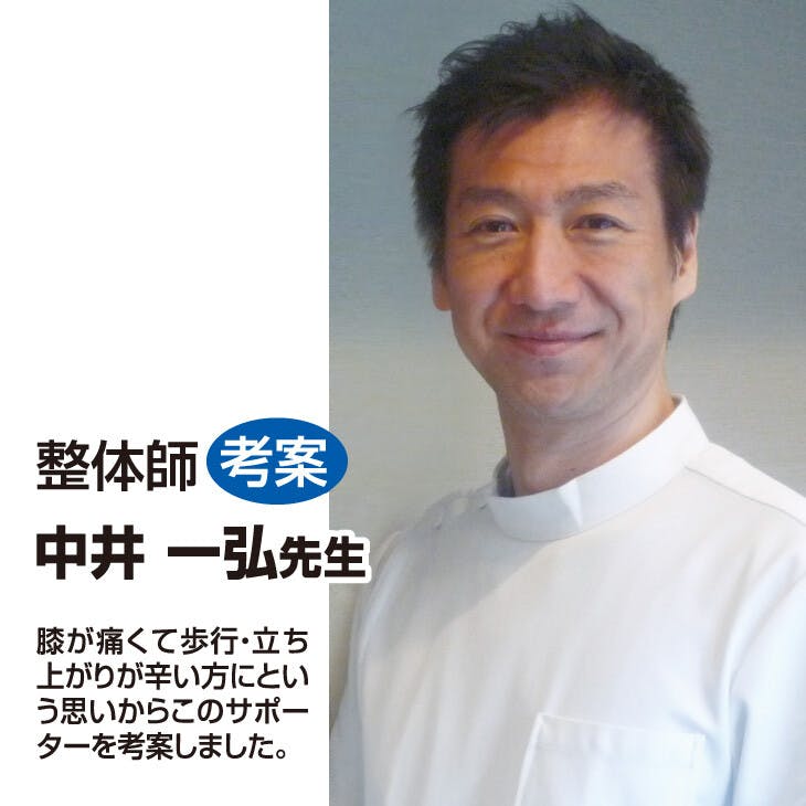 ●面ファスナーで簡単装着!! ●伸縮生地で動きやすい! ●整体師 中井一弘先生考案:膝が痛くて歩行・立ち上がりが辛い方にという思いからこのサポーターを考案しました。 ●男女兼用タイプ