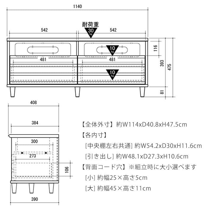 テレビ台 テレビボード ローボード 幅114cm 木製 収納 引出し テレビラック TV台 おしゃれ AVボード 一人暮らし