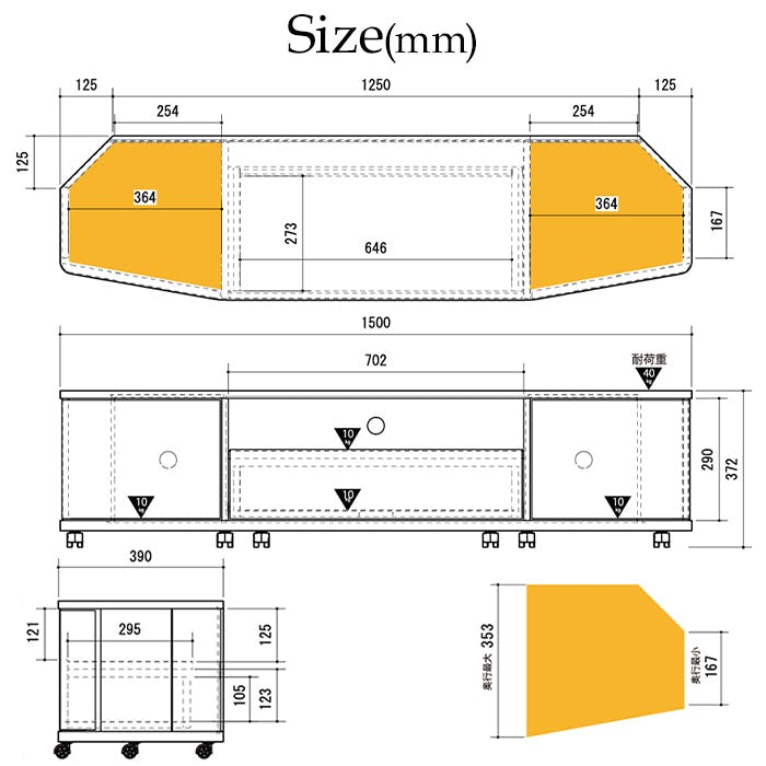 [天板] 40kg [棚板] 10kg [引出し] 10kg