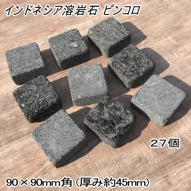 ピンコロ石 敷石 インドネシア 溶岩石 ピンコロ 半丁 27個入 90×90mm角 厚み約45mm 天然石 グレー 黒 溶岩 石 ガーデニング 建材 半丁掛 石材 庭 庭敷石 ブロック 敷き石 ガーデニング石材 ピンコロ石半丁