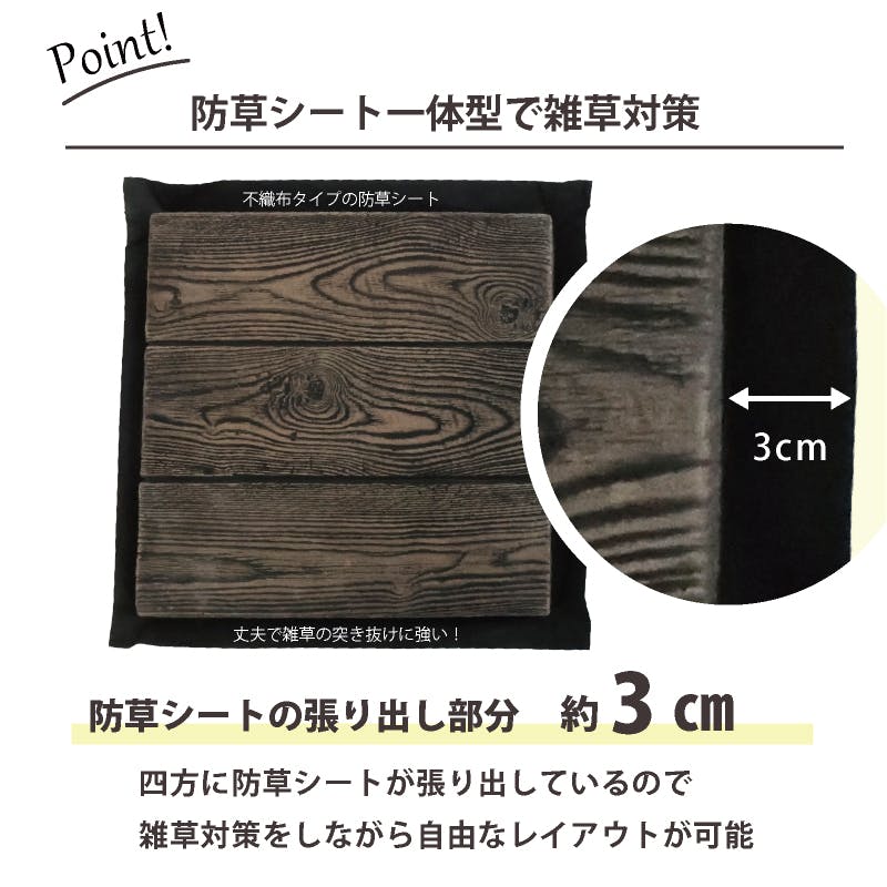 【 防草シート付き コンクリート製タイル】 ライトウッド 木目調 庭 ステップ 飛石 敷石 お悩み解消 雑草対策 置くだけ 簡単施工 diy ウッドデザイン 滑り止め 舗石