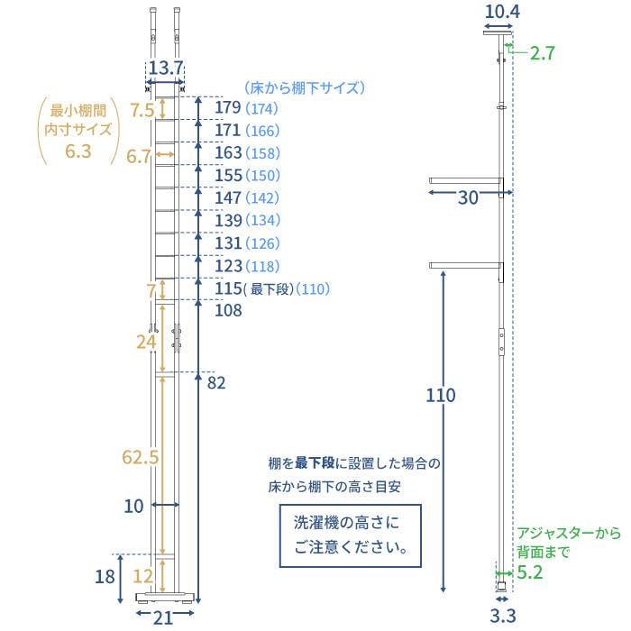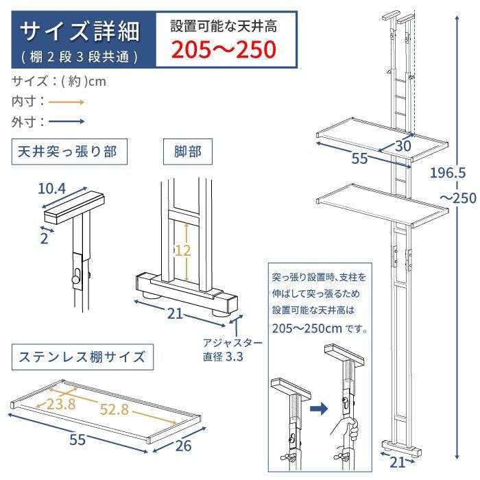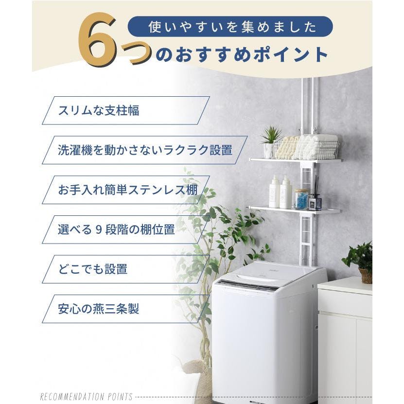 22069【YGL-2069】日本製 ステンレス棚 突っ張り ランドリーラック 幅55 スリム ラダー 棚2段 ホワイト 燕三条 洗濯機ラック 伸縮 ランドリー収納 白 防水パン