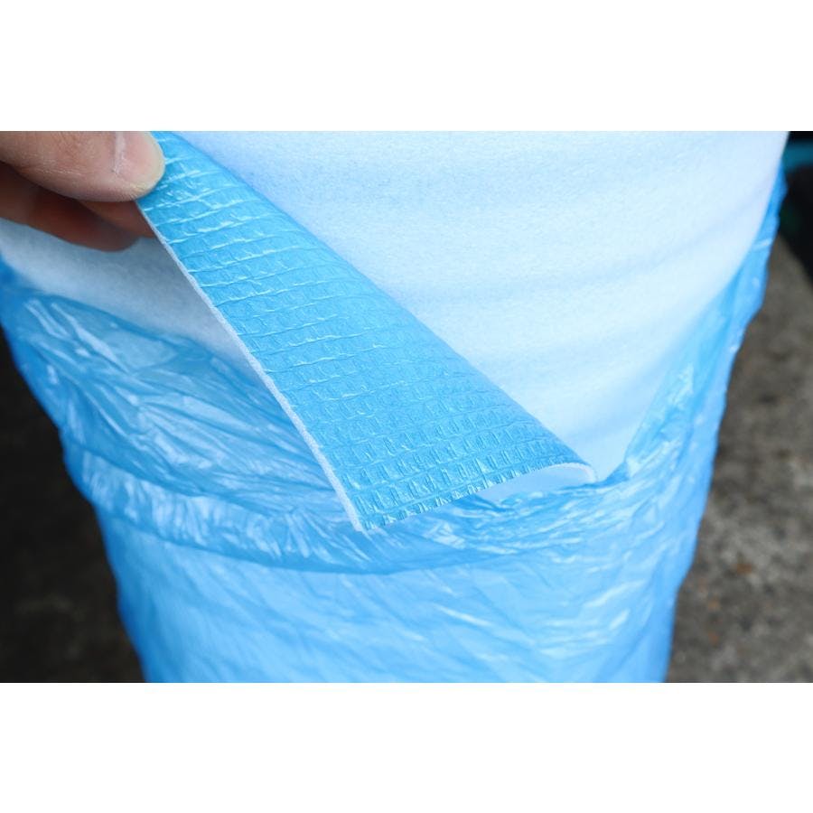 ●発泡製品の為、軽くて緩衝性に優れています。 ●独立気泡の為、撥水性、防湿性に優れています。 ●使用場所にあわせて、カッター・ハサミ等で簡単にカットできます。 ●紙管レスの為、ゴミが出ません。 ●逆巻き(ブルー面内側)ですので、施工に便利です。