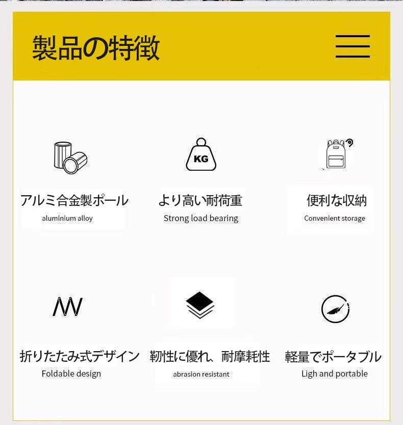 コンパクトサイズなのでちょっとしたスペースに設置できますので。キャンプ、お花見、釣り、バーベキュー、運動会、などのアウトドアのはもちろん、登山、公園、レジャー、ピクニック、行列の待機用など幅広くお使いいただけます。