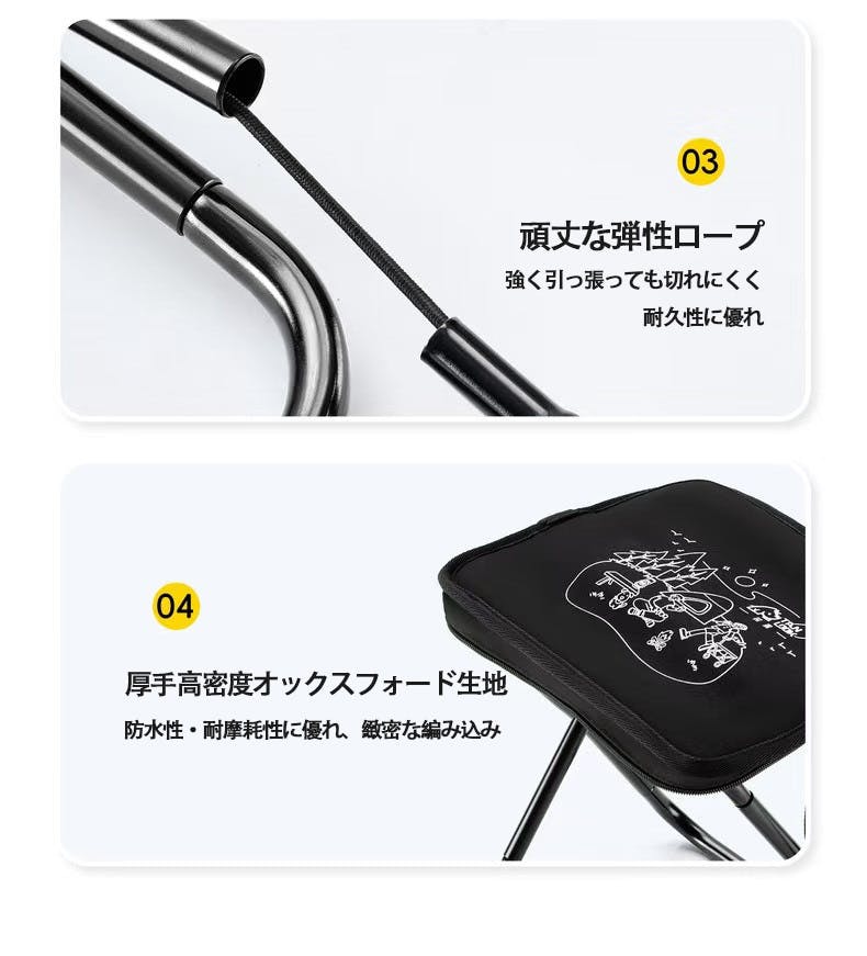 座面は600Dの厚手で丈夫な生地を使い、張りのある安定した座り心地と耐久性を兼ね備えました。また採用のオックスフォード生地は通気性もよく、快適に過ごすことができます。膝をあまり曲げなくても座れるので、長時間使用しても疲れません。