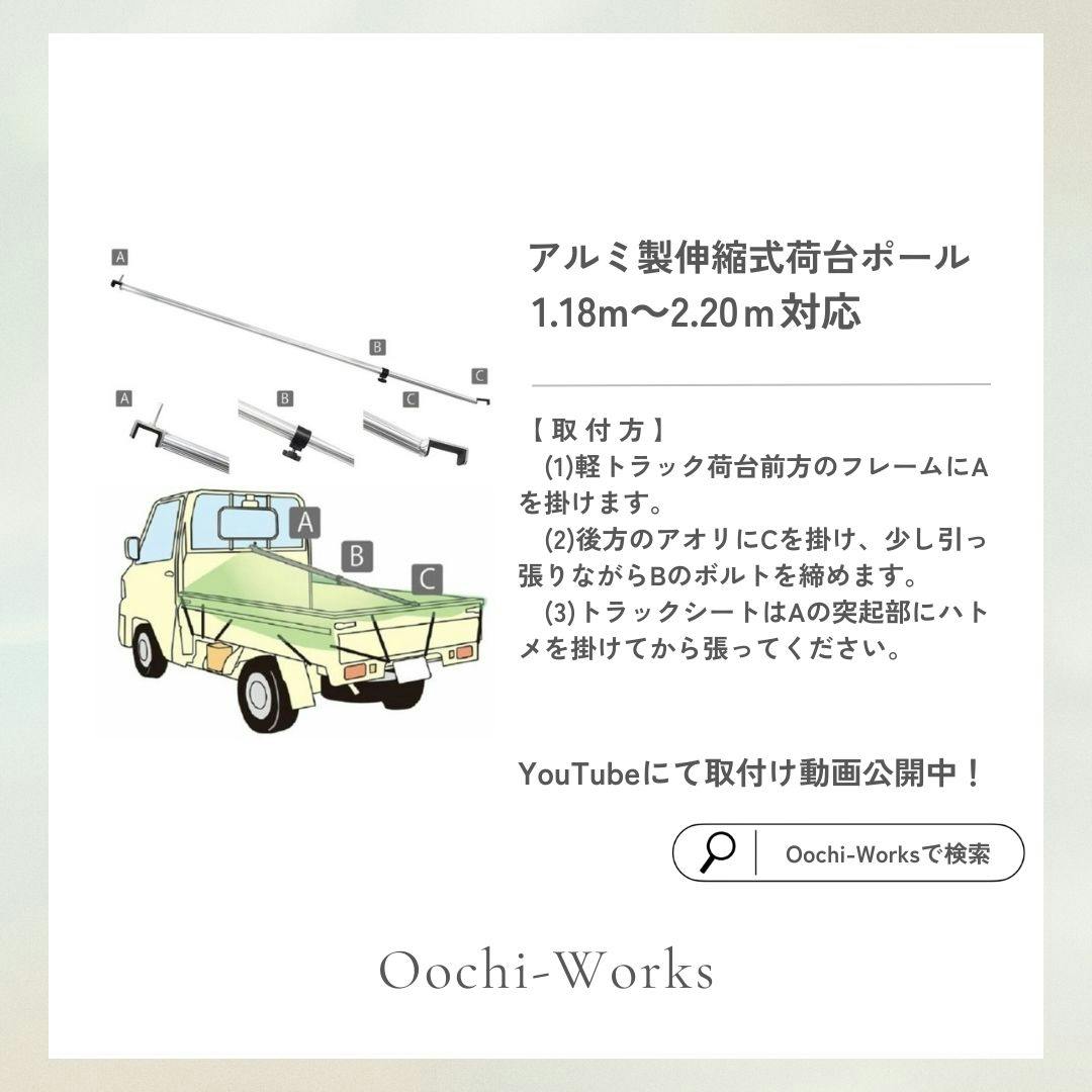 フック前面・内側にキズ防止用の保護ラバー付。軽くて丈夫なアルミ製で、取り付けも簡単!傾斜がつく事で、荷台を雨や雪から守ります。伸縮フレームで1.18m〜2.20mまで調整可能。