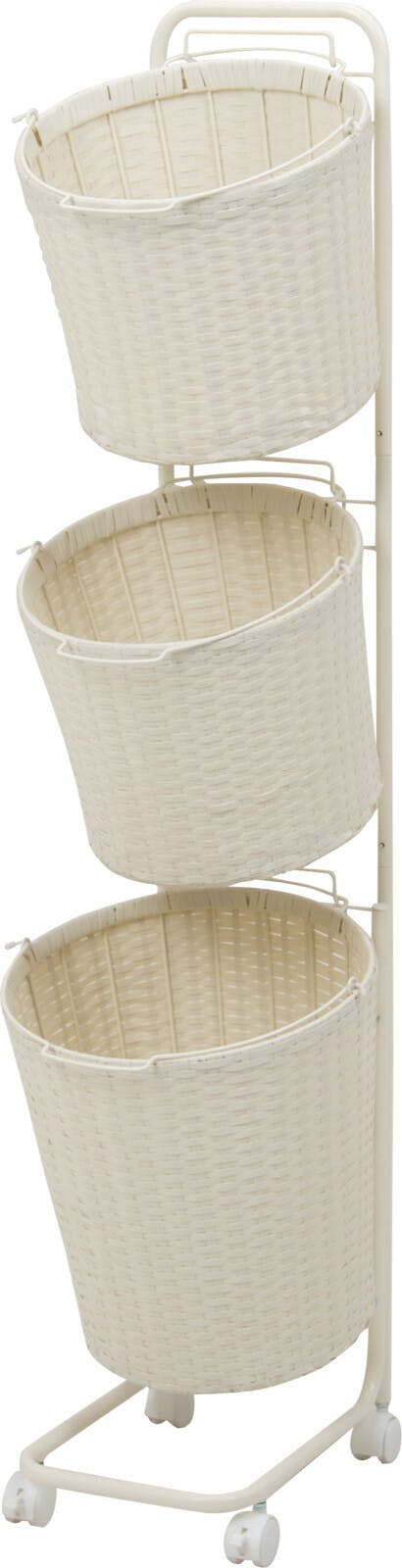 洗濯物を仕分けできるランドリーワゴン ●キャスター付きで移動が楽々 ●カゴは取り外して持ち運び可能 ●ポリエチレン素材で水にも強い ●通気性のよい編み込みデザイン ●選べる3色2サイズ展開 <仕様> ●キャスター付き ●お客様組立式
