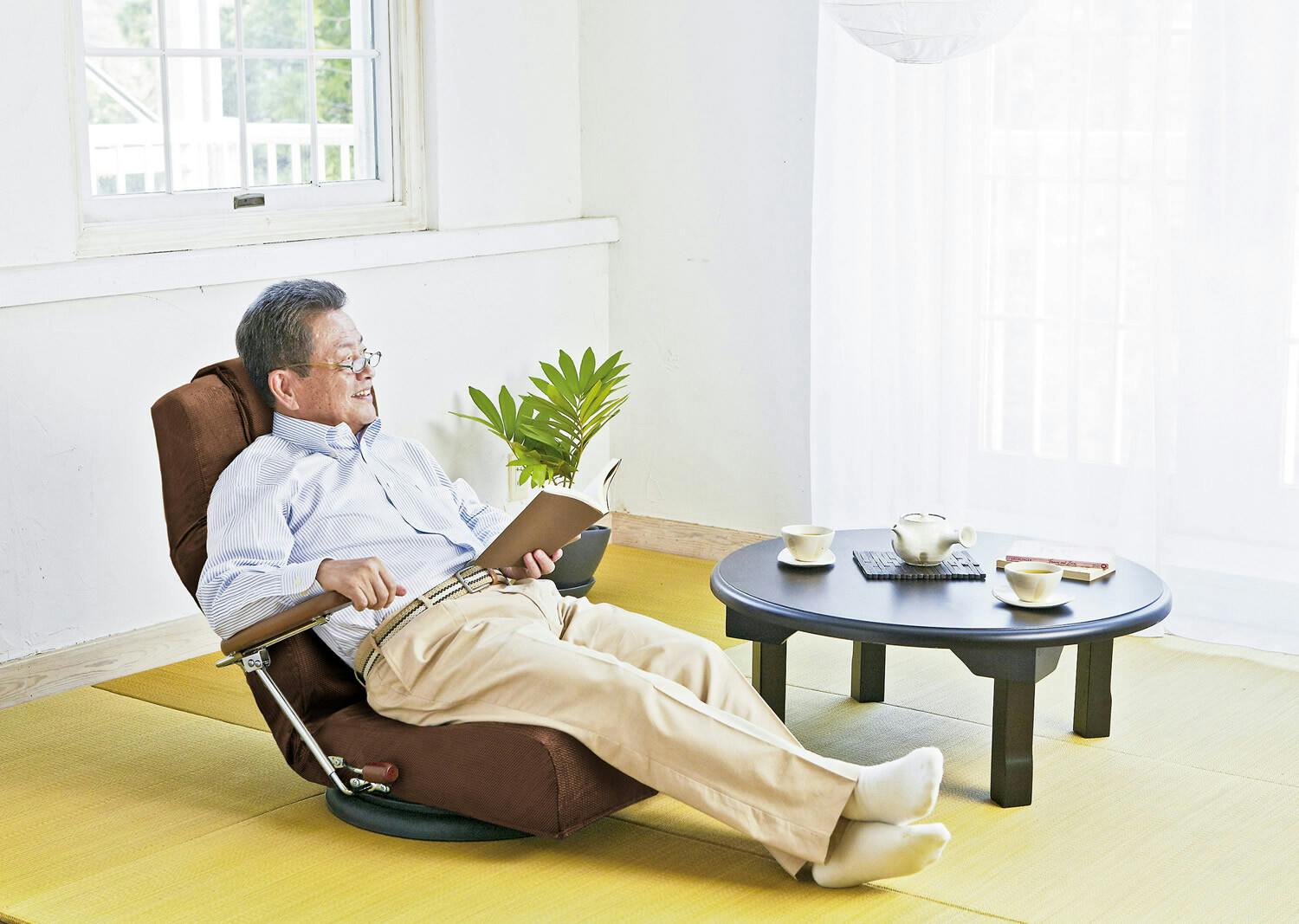 理想的なS字を保つ背もたれ形状で腰に優しい構造の座椅子です。 ●理想的なS字形状を保つ背もたれ形状。 ●お尻の前滑りを防止する座面形状。 ●TV鑑賞に便利な5段階ヘッドリクライニング。 <仕様> ●レバー式13段ギア ●360度回転 ●ヘッドリクライニング5段