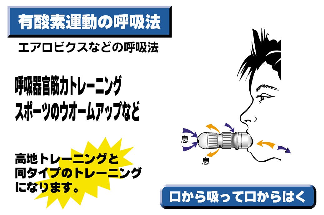 ロンドンからやってきた、息を吸う力・履く力を鍛える呼吸器官筋力トレーニング器。 ●口にくわえて呼吸をするだけで約3週間で呼吸筋を強化。 ●英国で開発。世界中で大ヒット中! ●スポーツ愛好家にも役立ちます。 ●呼吸器官筋力に抵抗を与え、パワーアップ! ●呼吸器官筋肉のための「ウエイト・トレーニング」 ●マウスピースをくわえて深呼吸するだけ!「ながら」トレーニングができます。 <仕様> ●強さ調節機能:無段階ダイヤル式 ●セット内容:本体、ポーチ