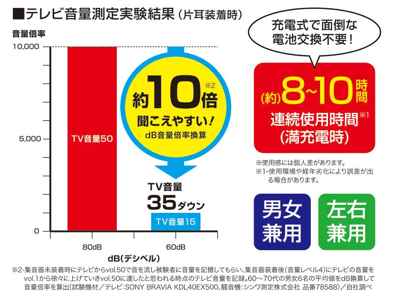 本品は医療機器(補聴器)ではございません。疾病の治療用としてご使用しないでください。お肌に合わない場合や、かぶれ・かゆみ等を感じた場合はご使用を中止し、医師にご相談ください。傷・かぶれ・湿疹等のある場合にはご使用しないでください。