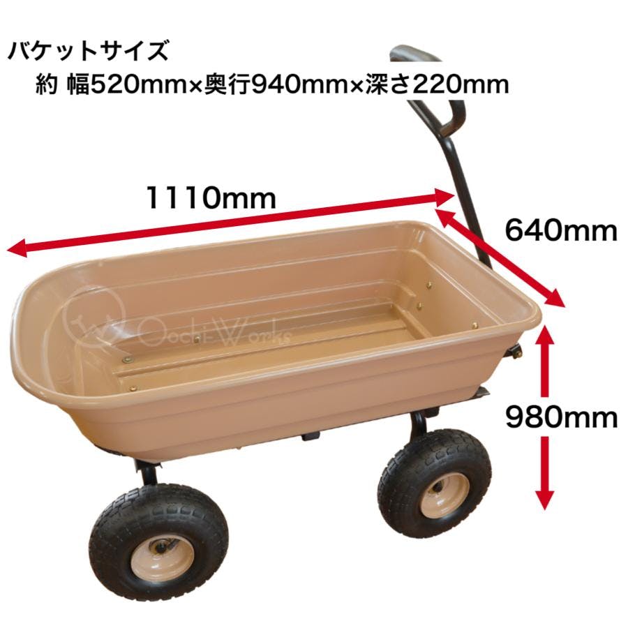 ●キャンプ道具、野菜、果樹等の運搬 ●ダンプ式で培養土、落ち葉、薪等の運搬作業に大変便利です ●ダンプ式・・・バケットが傾き、楽に荷下ろしができる!(画像4.5)