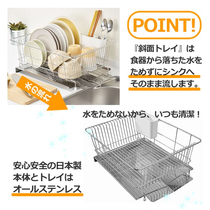 水切りラック 水切りかご ステンレス 横置き ワイド 横型 水切りトレー ステンレス製 日本製