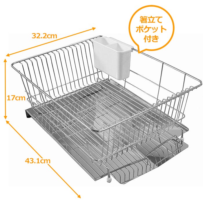 シンク内に水が流れる構造。トレイ内に水が溜まらないので、カビやヌメリを抑え衛生的です。たっぷり入るワイドなサイズの横型タイプです。便利な箸立て付き。※トレイに貼り付けてある保護シートを外してお使いください。