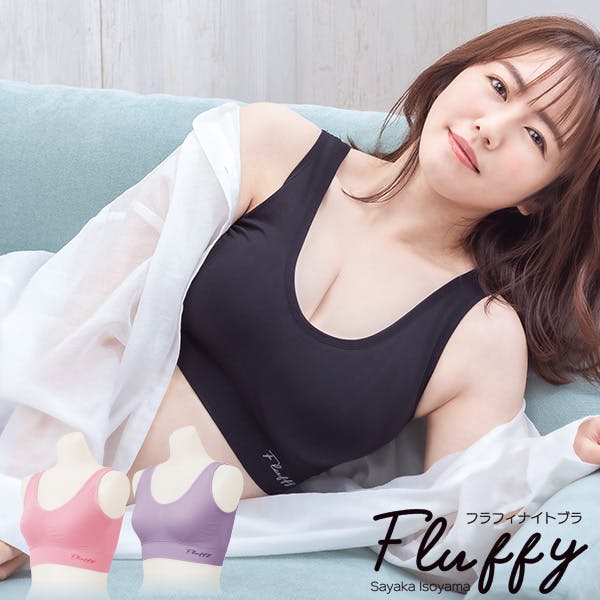 【Fluffyナイトブラ ブラック M-L】 ちあふる 磯山さやかプロデュース。パッド一体型でバストを寄せて支えるナイトブラ。幅広ストラップで肩が楽。脇高設計でスッキリ補整。 JAN:4571414692298