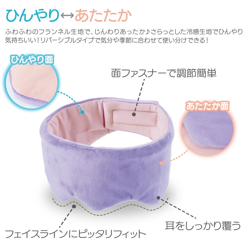 【耳までつつむ リバーシブルアイマスク お得な2個セット】 ちあふる あったか面とひんやり面のリバーシブル。耳まで包み込むデザインで光を遮り快眠サポート。ふわふわマイクロわた採用。男女兼用サイズ調整可。洗い替えに便利なセット。安眠 睡眠アイテム まとめ買い JAN:4571414695763
