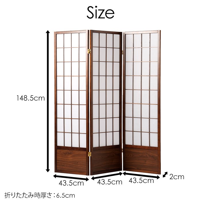 幅43.5×厚さ2×高さ148.5cm×3枚(折り畳み時厚さ/6.5cm)