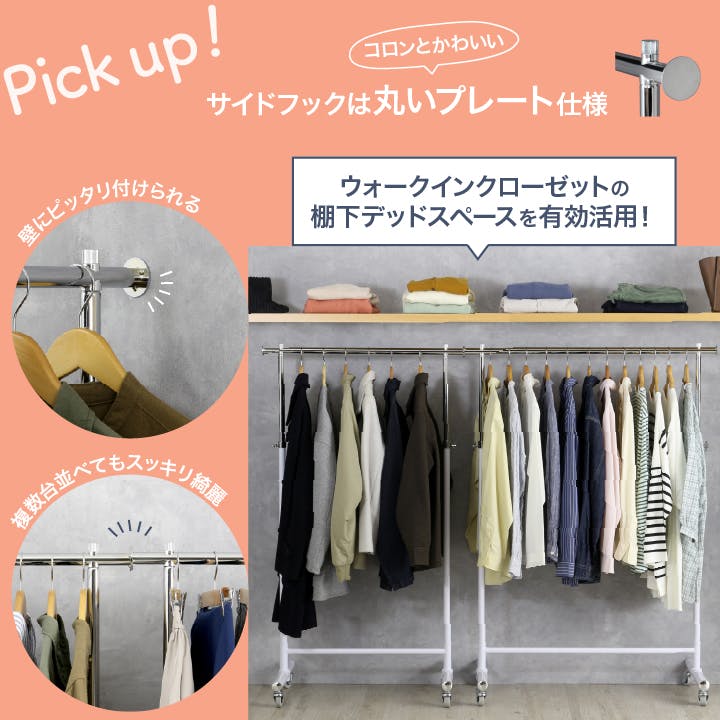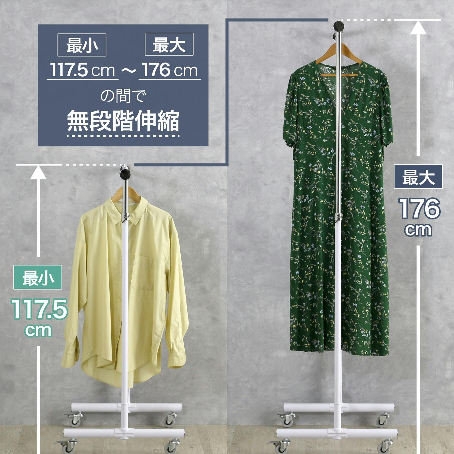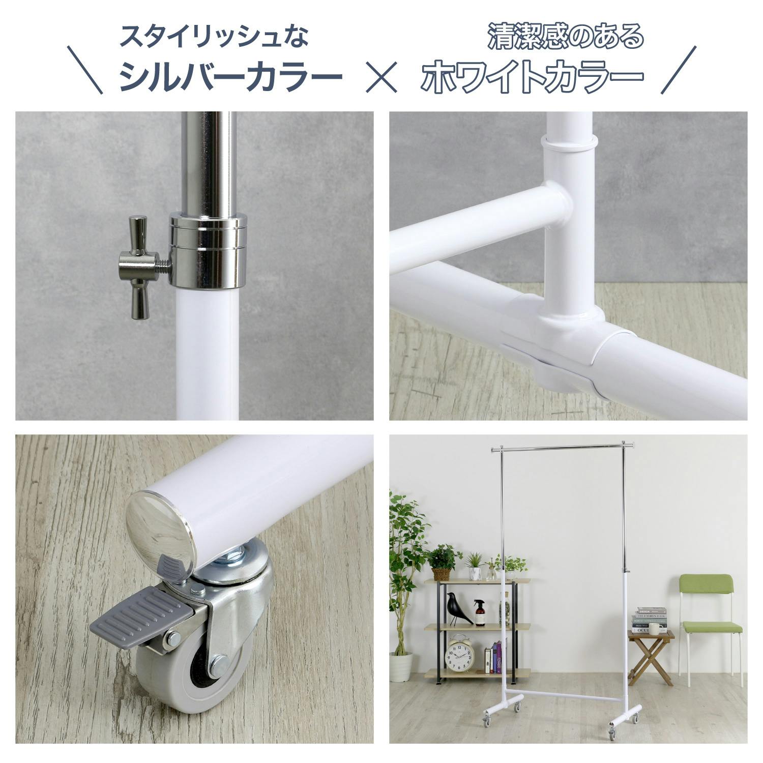 21453【MH-453】ハンガーラック パイプハンガー コートハンガー 高さ伸縮 キャスター付き スリム ホワイト 白 幅116cm 室内物干し 洋服掛け 衣類 収納 ラック 衣替え 布団干し プロ仕様 耐荷重 70kg おしゃれ ウイルス対策 コート掛け 川口工器