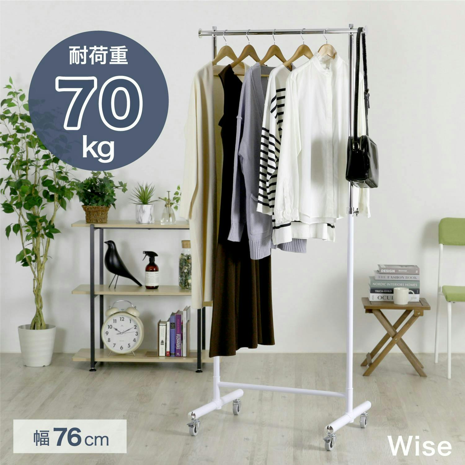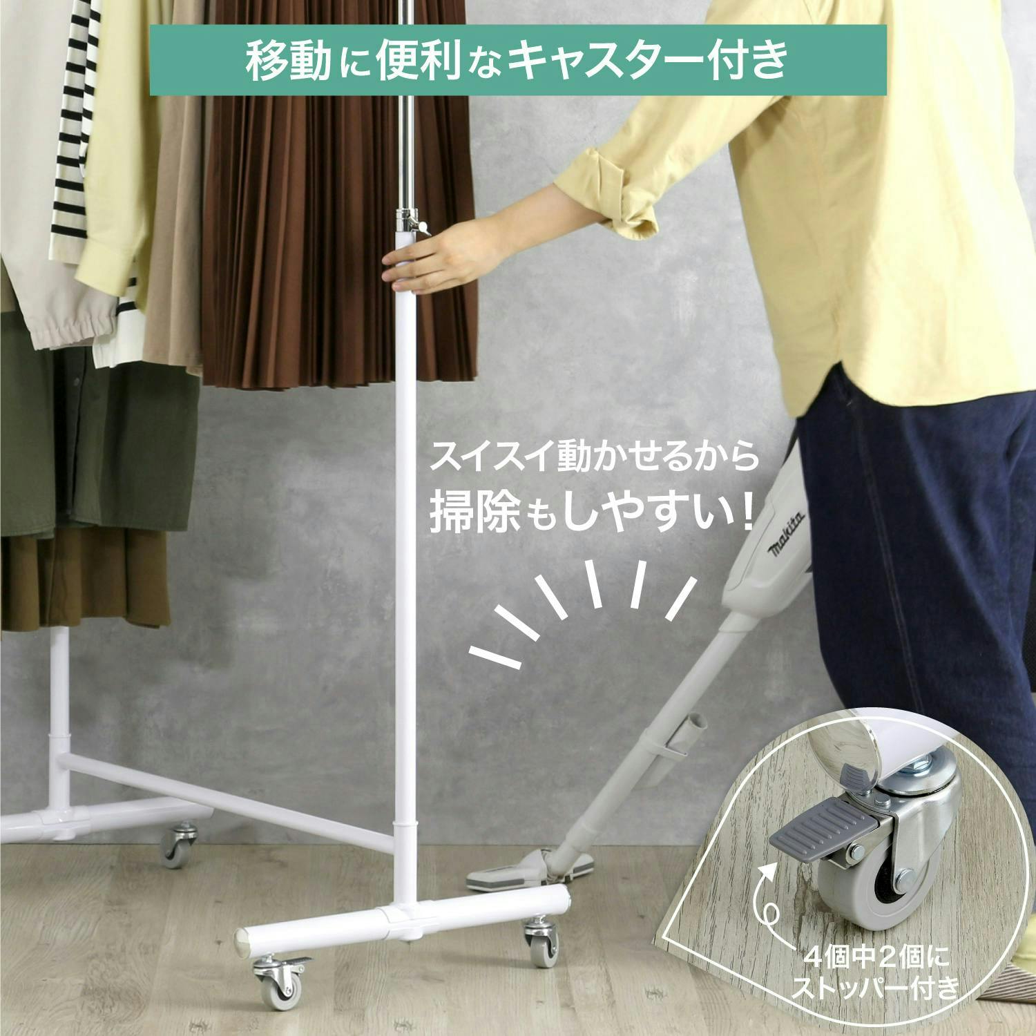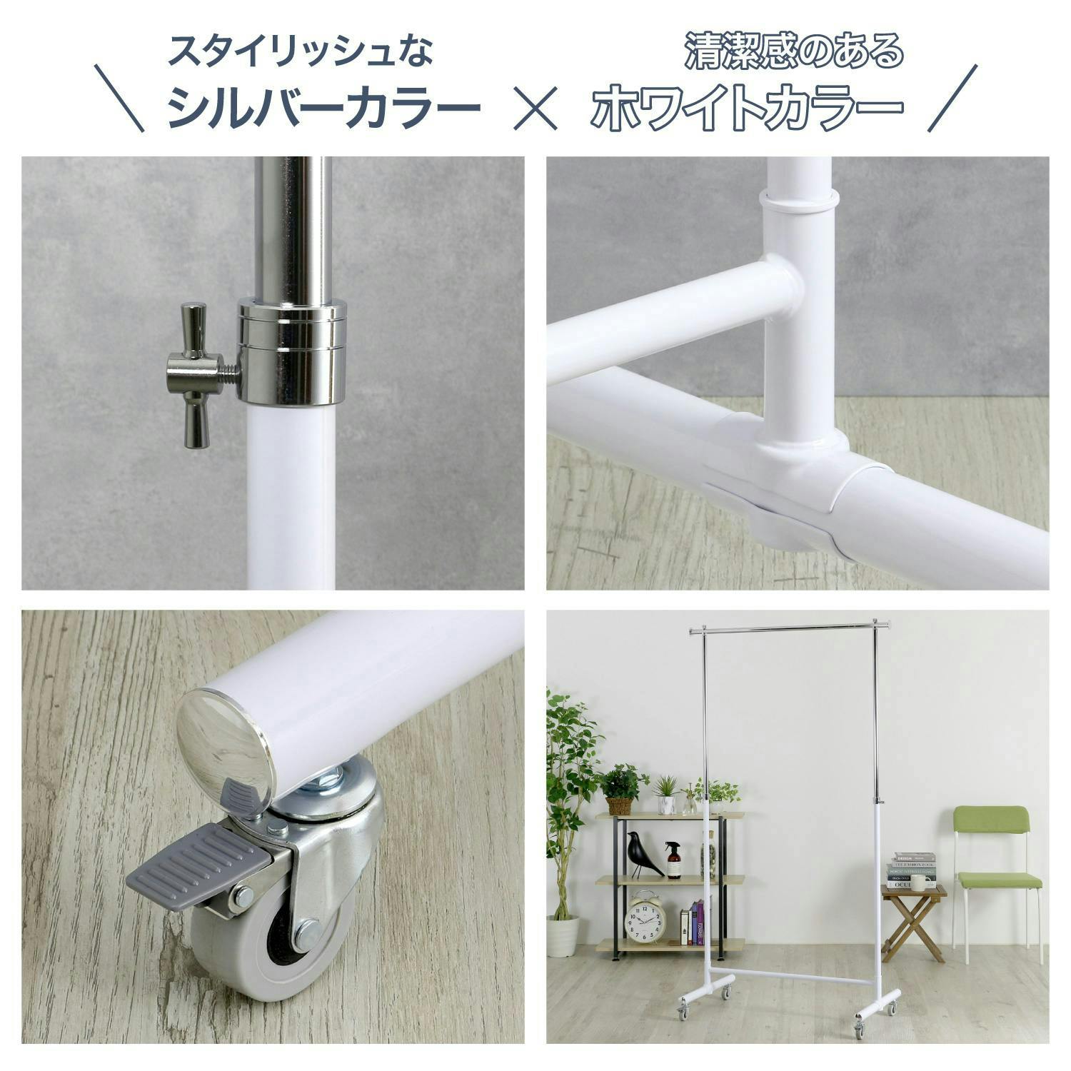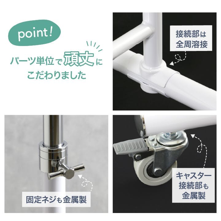 • ハンガーラック パイプハンガー コートハンガー 高さ伸縮 キャスター付き スリム ホワイト 白 幅 76cm 室内物干し 洋服掛け 衣類 収納 ラック 衣替え 布団干し プロ仕様 耐荷重 70kg おしゃれ ウイルス対策 コート掛け 川口工器 21451【MH-451】