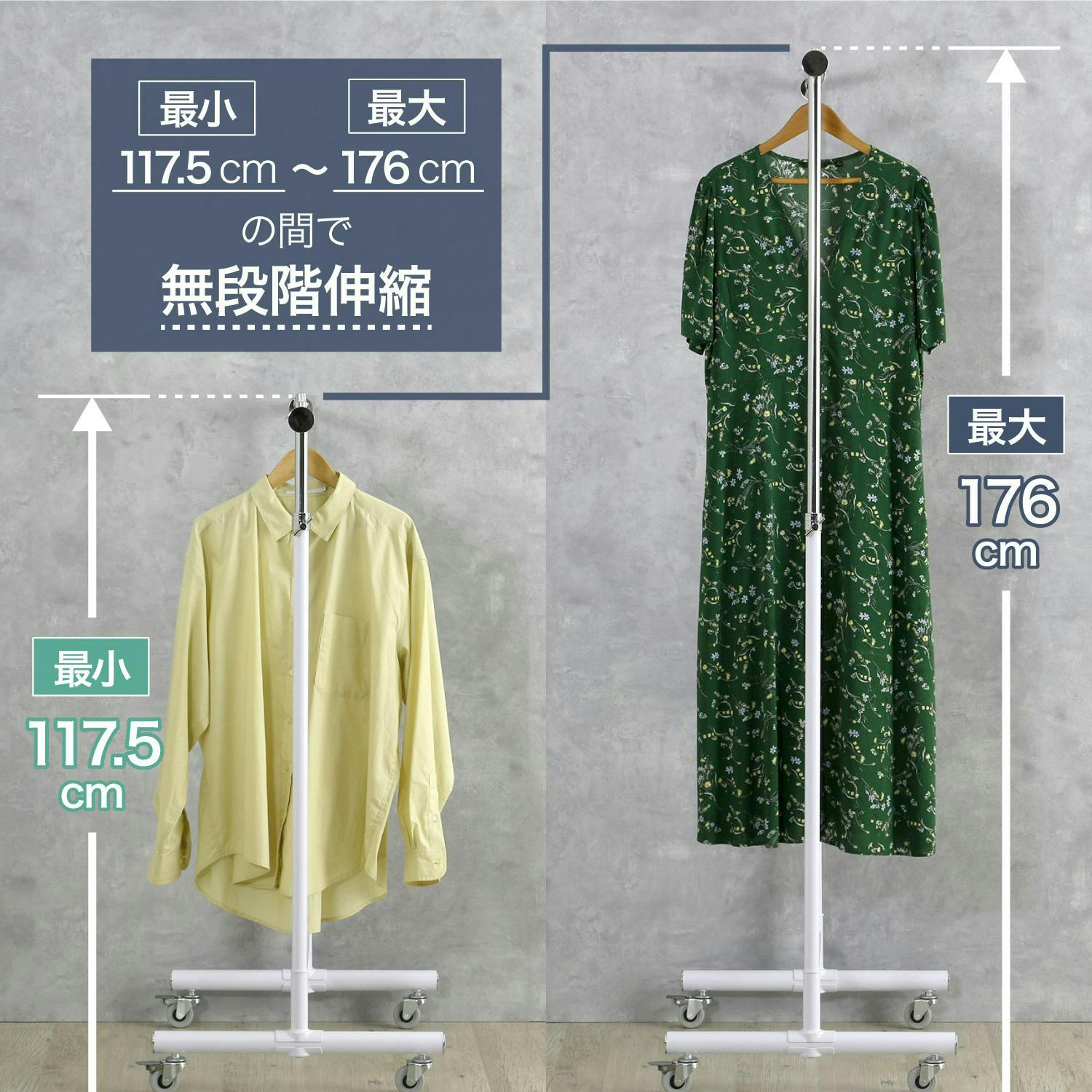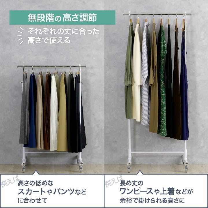 ハンガーラック パイプハンガー コートハンガー 高さ伸縮 キャスター付き スリム ホワイト 白 幅 76cm 室内物干し 洋服掛け 衣類 収納 ラック 衣替え 布団干し プロ仕様 耐荷重 70kg おしゃれ ウイルス対策 コート掛け 川口工器 21451【MH-451】