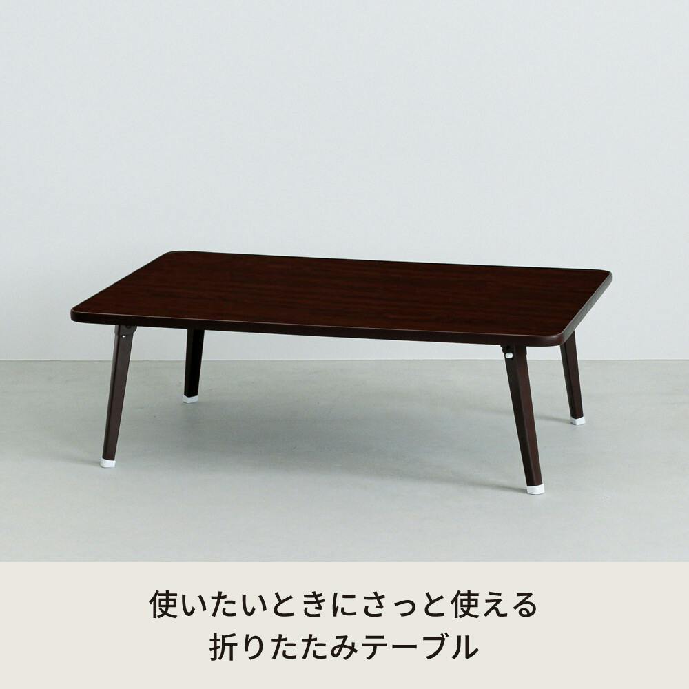 あなたのお部屋にちょうどいい。 優しい木目がお部屋に馴染むハウステーブル。 ナチュラルな木目調の折りたたみテーブル。 様々なインテリアと相性の良いシンプルデザイン。 天板のフチはゴムカバー付で、物が転がり落ちにくく。 角には丸みがありお子様やペットのいるおうちでも安心。 天板は表裏どちらも木目柄仕様なので見栄えも◎。 使わないときは脚を折りたたんで収納可能なので。 お部屋のスペースを広く使えます。 ※木目や節の柄には個体差がございます。