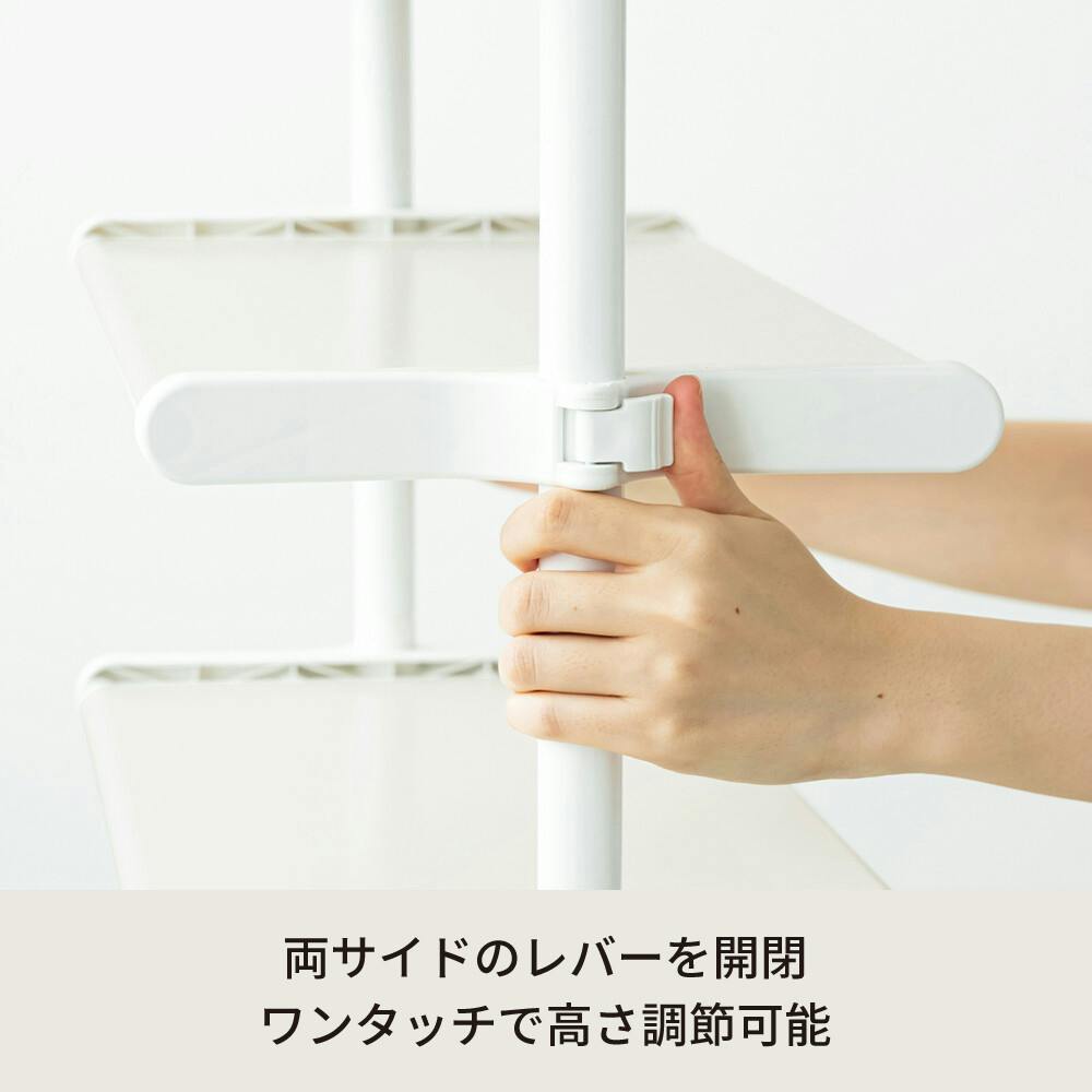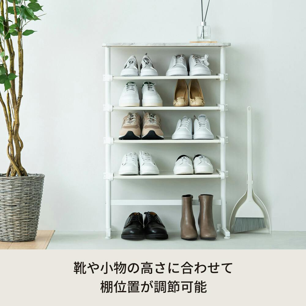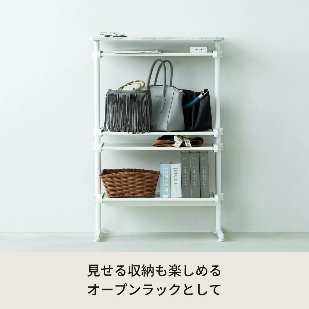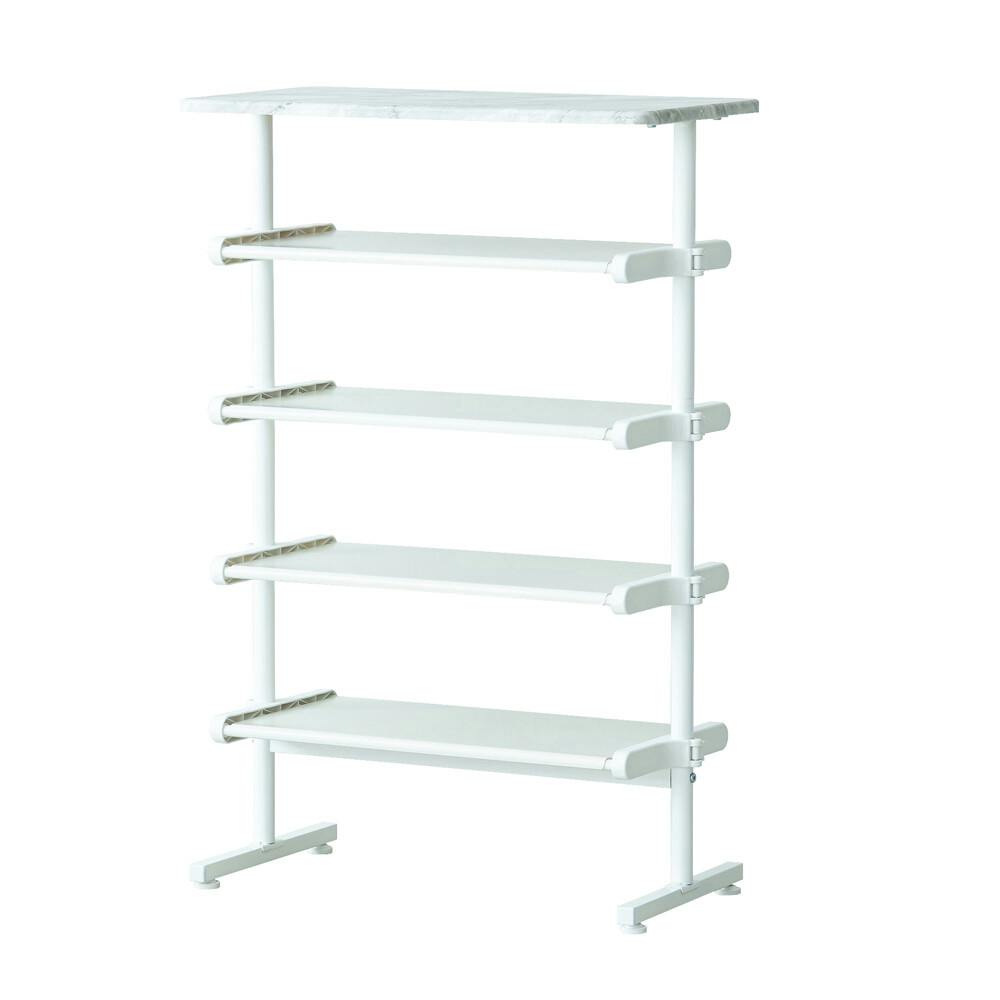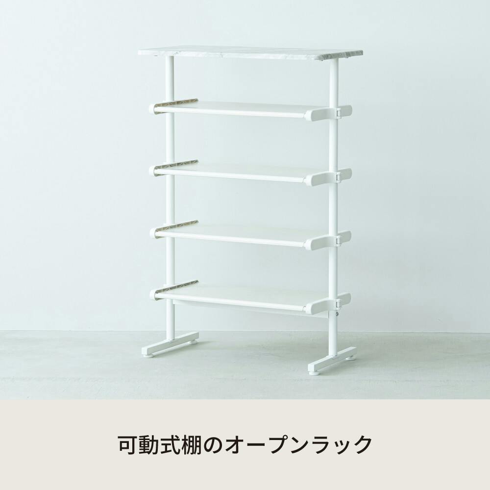 マルチに使えて、暮らしにフィットする。 ワンタッチ式可動棚ラック。 ワンタッチで高さを調節できる収納棚は。 ライフスタイルや収納ニーズに合わせて自由に高さ調節が可能。 ツヤを抑えたマットな質感は汚れてもお手入れがしやすい仕様。 置く場所を選ばないスリムなサイズ感なのでお家の色々な場所で活躍。 玄関でシューズラックとして使用したり、リビングで魅せる収納としても◎。