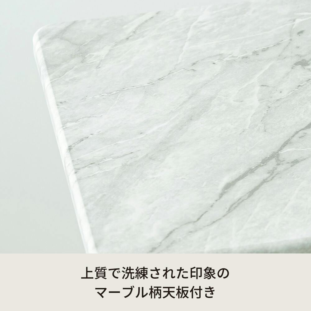 通気性の良いオープンタイプなのでキッチンやランドリーにもおすすめです。 用途に合わせて、下段を外してゴミ箱上収納にするなど応用できます。 どこか懐かしさを感じるヴィンテージテイストのウッド、都会的でモダンな空間を演出する大理石柄のマーブルの2タイプ。