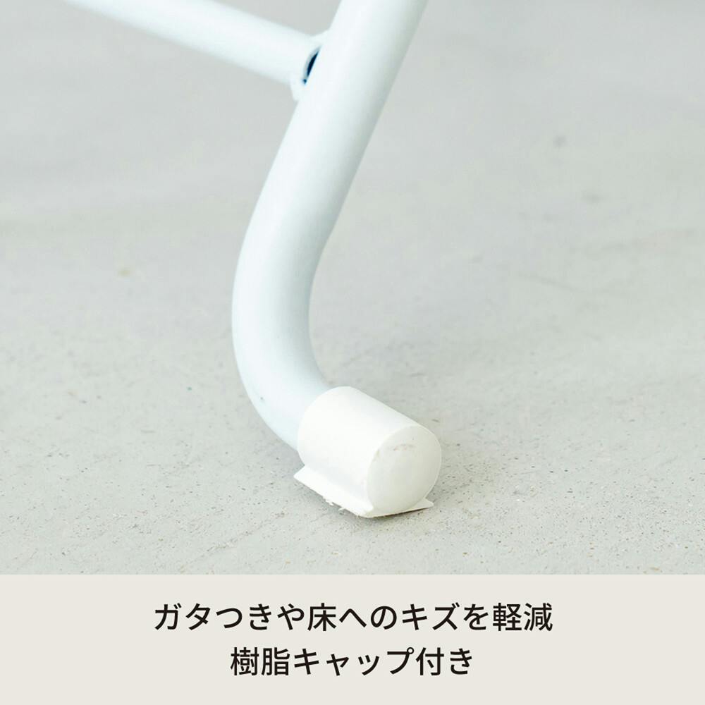折りたたみ式なので使いたいときだけ取り出せて、急な来客時にも便利です。 シート張りなので、汚れてもさっと拭き取れてお手入れも簡単。 清潔に気持ち良く使えることは、チェアを選ぶときには重要なポイントですね。 使用時に安心な座面ロック機能付。 また、脚部はキャップ付でがたつきを軽減します。