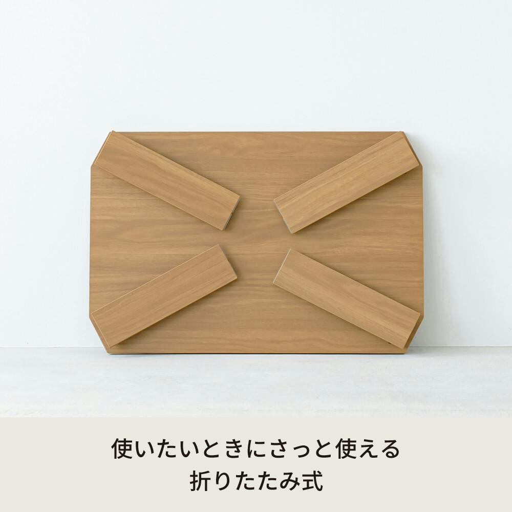 ・折りたたみ可能。 ・天板裏表木目柄仕様。 ・脚裏フェルト付。 ・完成商品。