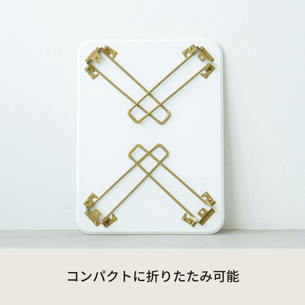 ニュアンスカラーがお部屋に映える。 幅60センチ 折りたたみテーブル。 ニュアンスカラーとゴールドを組み合わせた。 控えめな色味が大人女子の心をくすぐるデザイン。 コーディネート次第で大人っぽいも可愛いも叶える空間に。 天板は鏡面加工で、置くものを美しく反射して耐久性に優れ、汚れが目立ちにくいメリットも◎。 急な来客時にさっと使えて便利なコンパクトサイズ。 使わない時は折りたたんでスリムに収納出来る折りたたみ式。