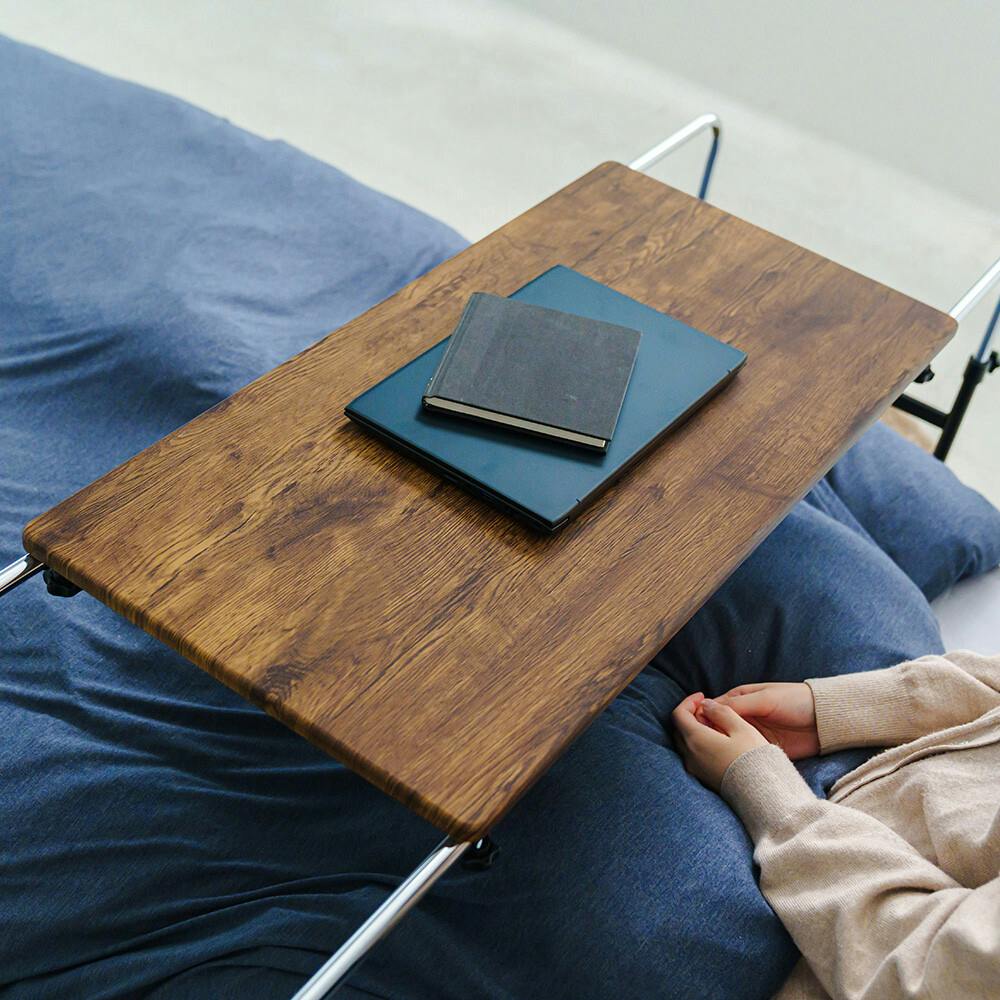高さと幅の調整が可能なベッドテーブルが。 さらに使いやすくなってリニューアル! 日々の暮らしに快適さをプラスする。 アジャストマルチテーブル ルーモ。 天板高や脚フレームの幅は。 ネジ式タイプで簡単に調節可能! 天板高を合わせるときに目安になる目盛り線付きで、ストレスフリーなセッティングが可能。 用途や使う人に合わせて、ぴったりの高さに。 お部屋の雰囲気に合わせて選べる天板柄は4カラー。 柄やカラーに合わせたそれぞれ異なる質感で、食事や作業も楽に使える幅80cmの天板サイズ。