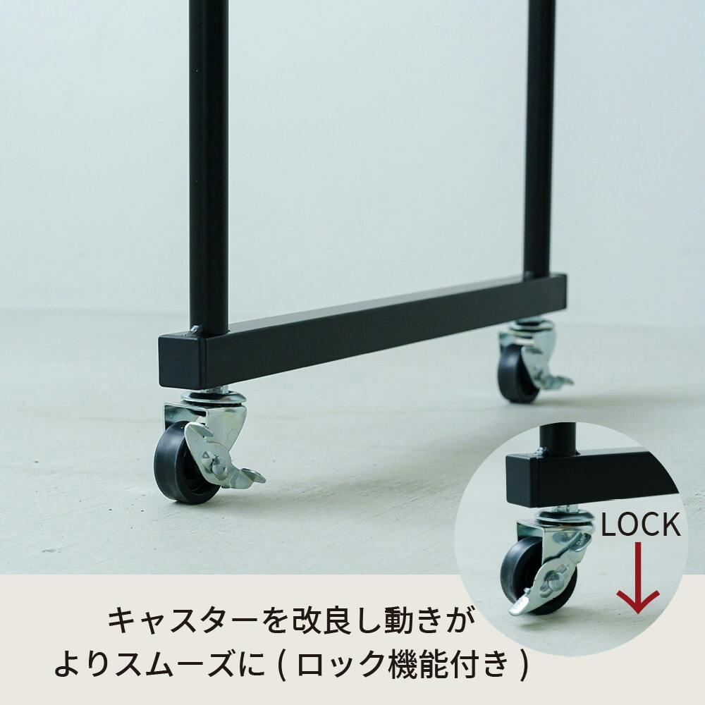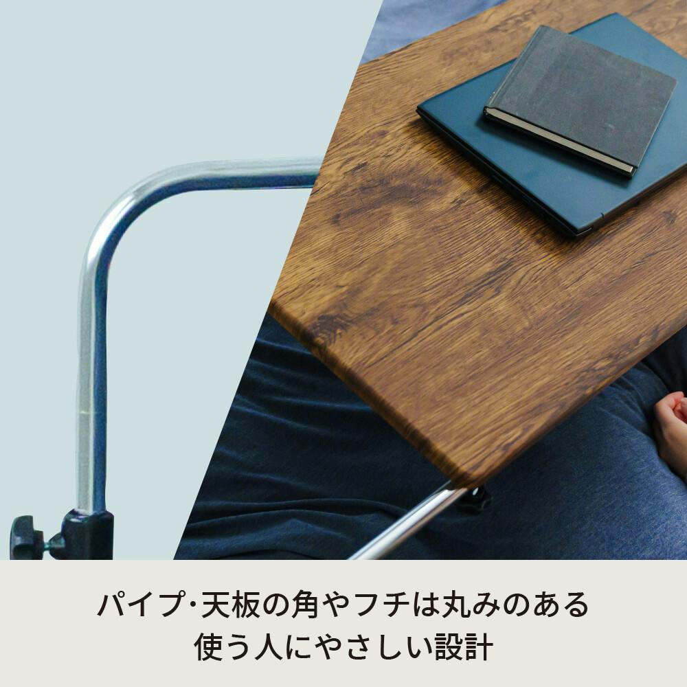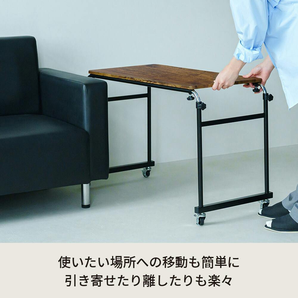 エッジは丸みをつけ使う人にやさしい設計に。 さらに、リニューアルされたキャスターは。 よりスムーズかつ静かに動く仕様に改良。 片手で押したり引いたり、使いたい場所に移動も楽々。 ストッパーは4ヵ所付いているので、しっかり固定もでき安心してご使用いただけます。 ~様々なシーンで活躍~。 ・寝室ではベッドテーブルとして。 ・リビングではノートパソコン用のデスクとして。 ・キッチンではちょっとした作業台として。 ・オフィスでは補助テーブルとして。