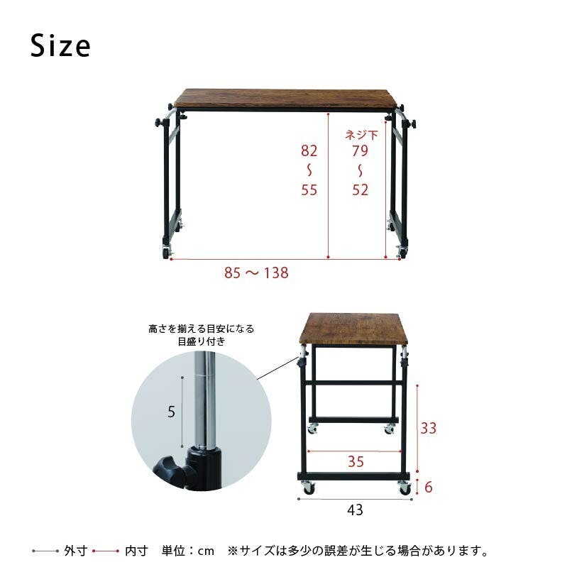 ・高さ・幅調節可能。 ・PCマウス使用可能。 ・キャスター付(全てストッパー付)。 ・組立商品。