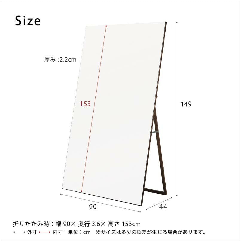空間に奥行と解放感を 90cm幅ノンフレームスタンドミラー。 ワイドサイズなのに圧迫感を感じさせないノンフレーム仕様。 身だしなみチェックはもちろん、ヨガ・ダンス・フィットネスにも最適。 置くだけでゆったり広々した空間が完成します。 並べて設置すると更にワイドに◎ノンフレームのため境目が気になりにくく。 快適にお使いいただけます。 塗装には安全性の高いF☆☆☆☆のウレタン樹脂塗料を使用しています。